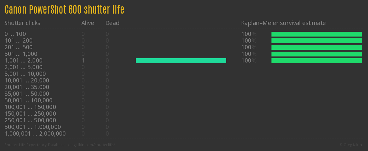 Direct link to this page: Canon PowerShot 600Average number of actuations after which shutter is still alive: 1,500.0