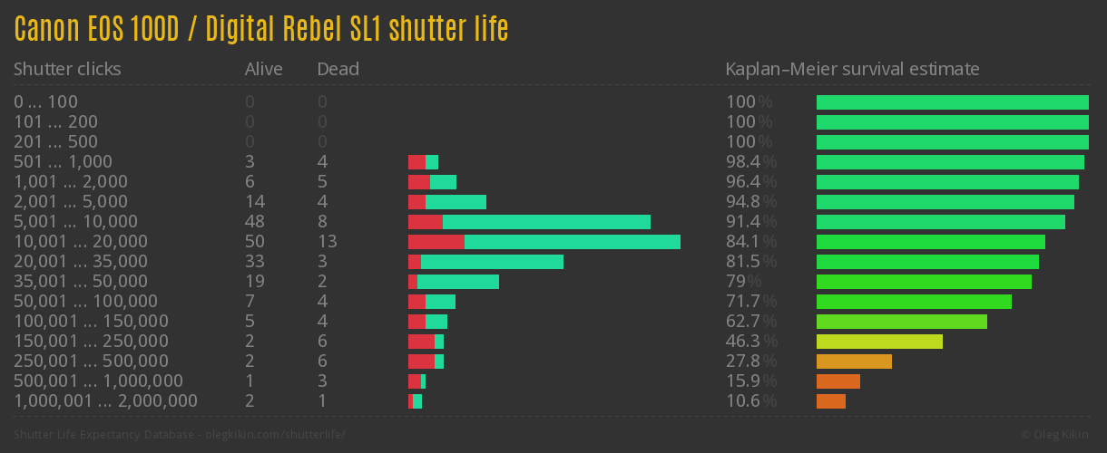 Canon EOS 100D / Digital Rebel SL1 Shutter Life