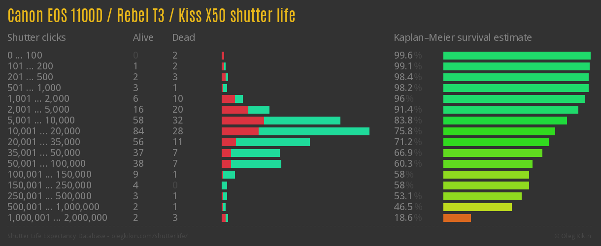 Canon EOS 1100D / Rebel T3 / Kiss X50 Shutter Life