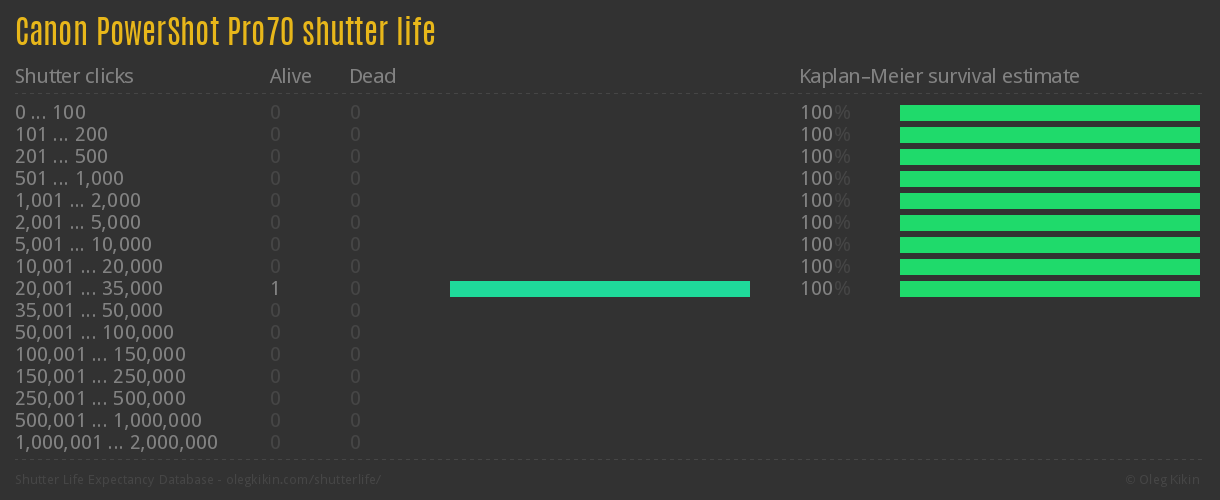 Direct link to this page: Canon PowerShot Pro70Average number of actuations after which shutter is still alive: 23,000.0