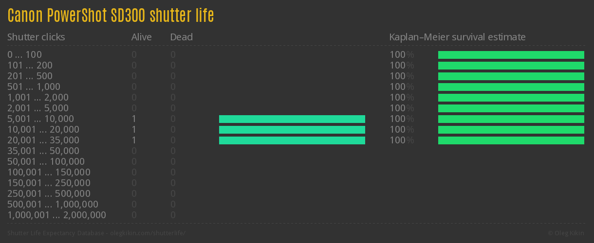 Direct link to this page: Canon PowerShot SD300Average number of actuations after which shutter is still alive: 17,333.3