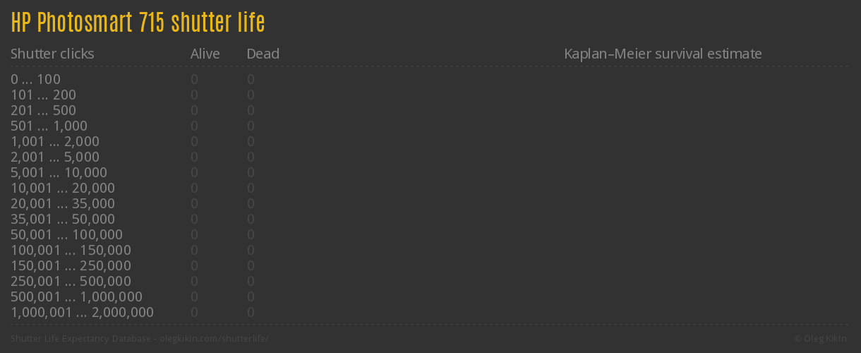 Direct link to this page: HP Photosmart 715Average number of actuations after which shutter is still alive: no data