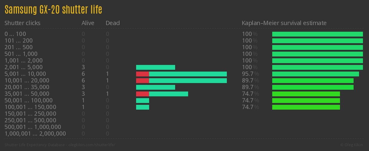 Direct link to this page: Samsung GX-20Average number of actuations after which shutter is still alive: 23,055.4